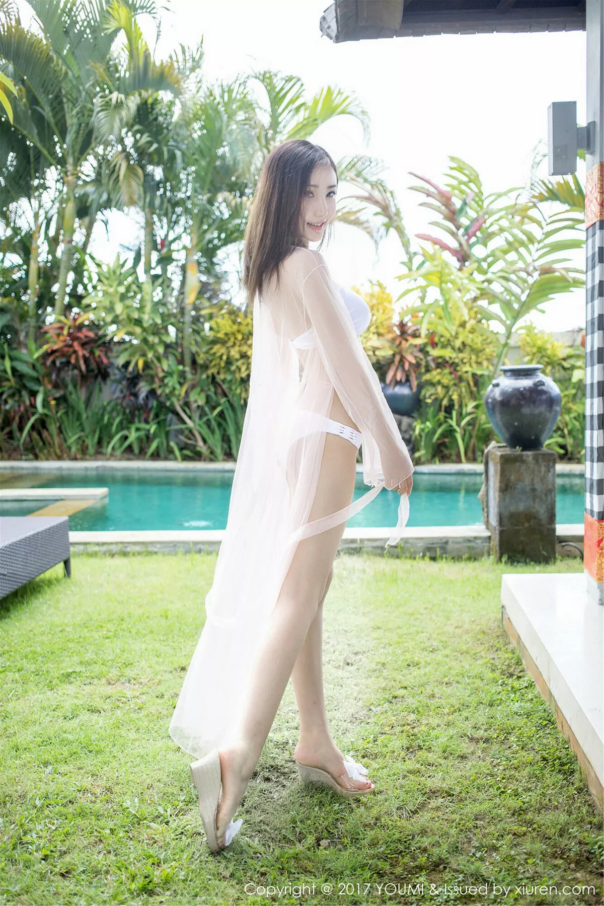 [YOUMI尤蜜荟] 2017.05.16 Vol.042 Yumi-尤美 女神@Yumi-尤美巴厘岛旅拍写真发布,亭亭玉立的站在泳池边,身披一袭长薄纱,举措多娇媚,玉肌伴轻风,美人如诗,美人如画,写真包含了两套服饰共51P,希望大家喜欢。。秀人旗下新写真机构[YouMi尤蜜荟]第042期Yumi-尤美性感比基尼娇媚写真。